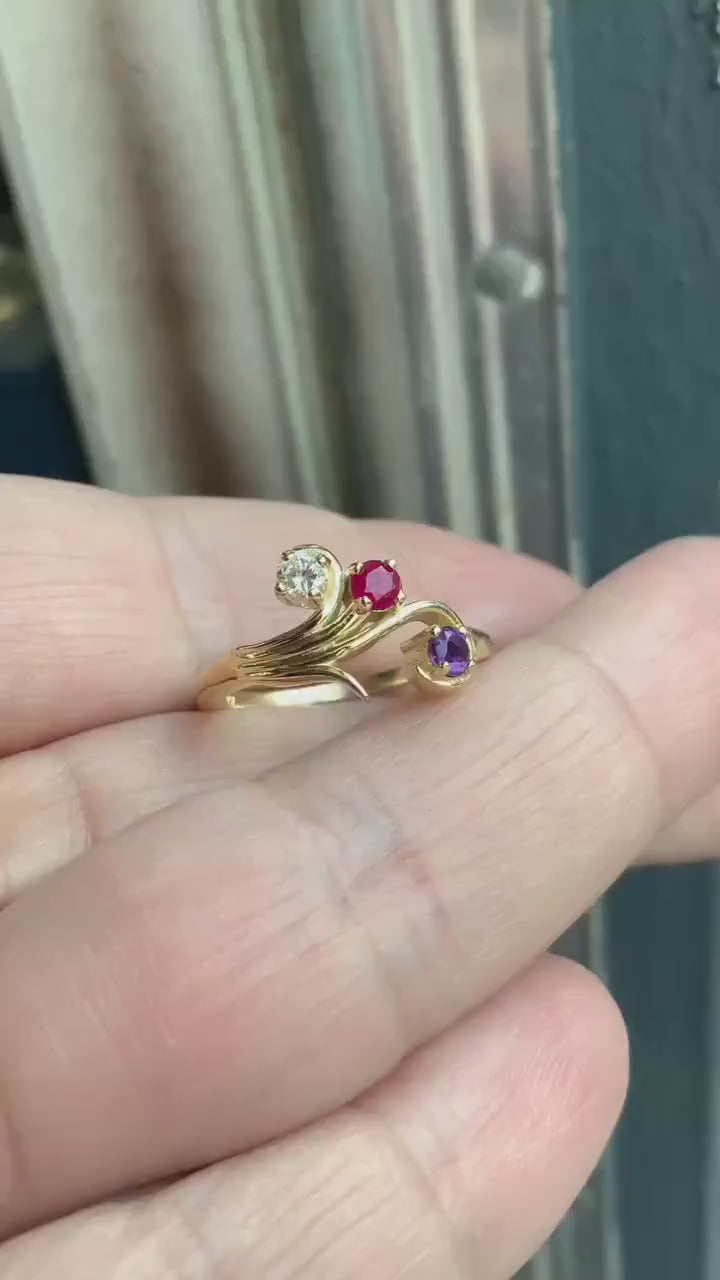 3 Stone Mother's Ring/ Tree Leaf Nature Inspired Floral Design/ Personalized Family Birthstone Twig Ring/ Diamond Ruby Amethyst Branch Ring