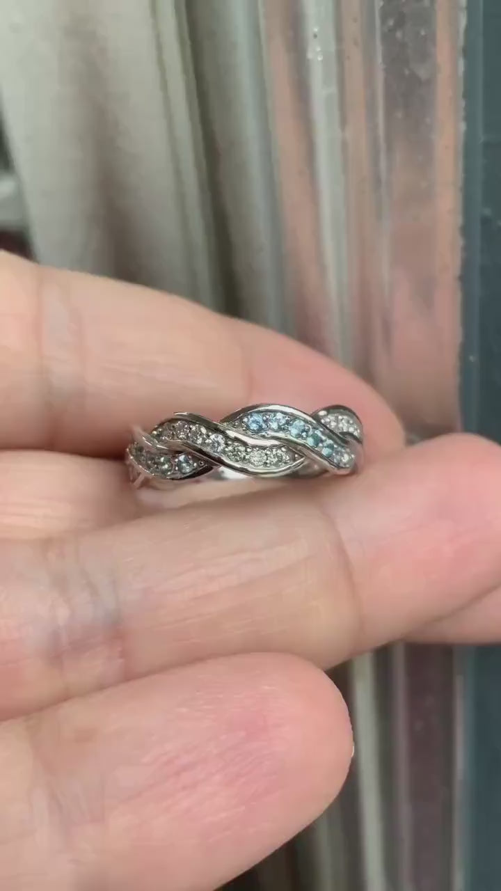 Aquamarine Diamond Twisted Vine Ring/ 6mm Full Eternity Pave Wave Ring/ Overlapping Twist Diamond Aquamarine Band/ Intertwined Stacking Ring.
