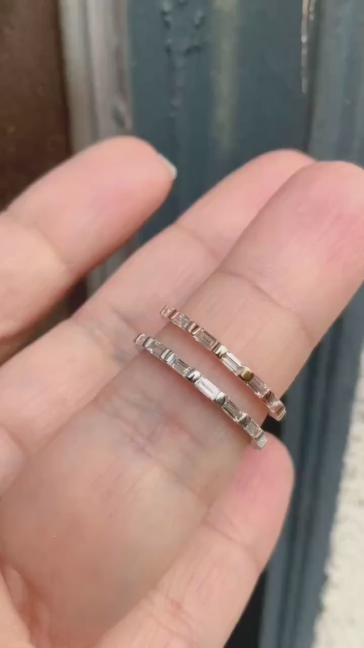 Baguette Bar Diamond Ring/ Natural Baguette Diamond Bar Set Full Eternity Wedding Band/ Minimalist Diamond Stack Ring w Appraisal 14K or 18K.