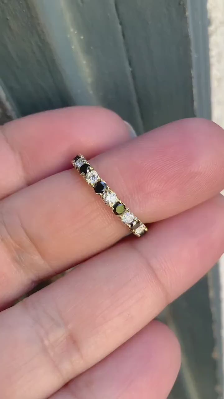 Black and White Diamond Ring/ 2.7mm Pave Half Eternity Band with Alternating Natural Diamonds/ Monochrome Diamond Ring/ 10K 14K 18K Platinum.