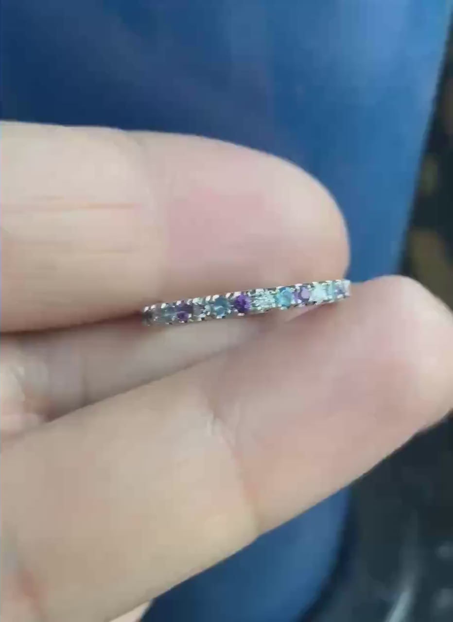 Diamond Amethyst Topaz Eternity Band Ring - 14K Gold, Platinum, Birthstone Stacking.