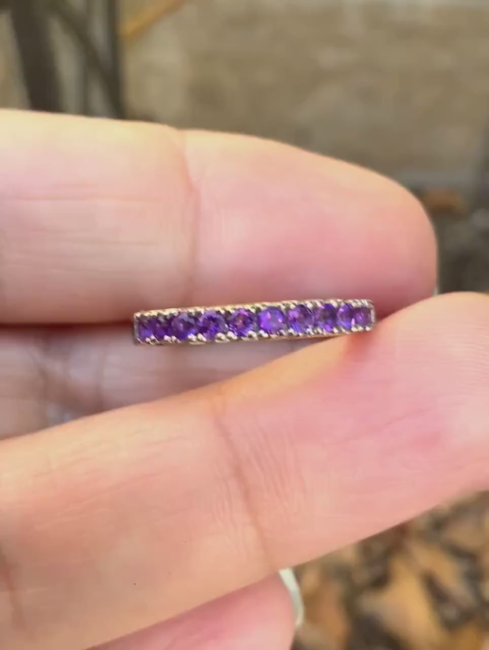 French Pave Amethyst Stacking Ring w 11 Stones/ Wedding 6th Anniversary Ring/ February Birthstone Band/ 14K, 18K or Platinum Amethyst Band.