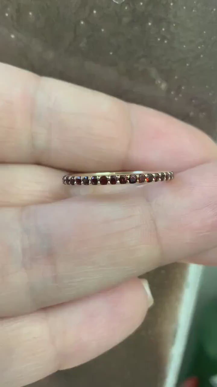 Garnet Half Eternity Ring/ 1.75 mm Garnet 2nd Wedding Anniversary Ring/ Surface Shared Prong Set Garnet Band/ January Birthstone Stack Band
