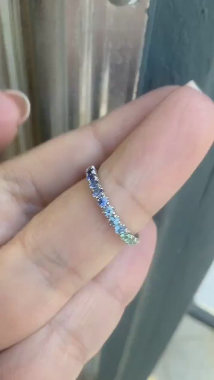 Gradient Blue Green Pave Ring/ Coastal Ombre Beach Wedding Band/ 2.3mm Half Eternity/ Mermaid Colors Diamond Alexandrit Aquamarine Sapphire.