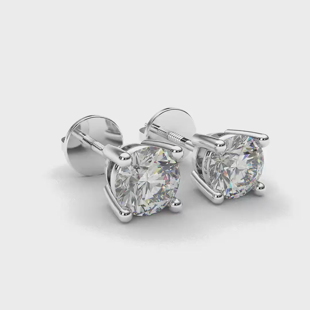 Lab Grown Diamond Stud/ Screw Back 4 Prong Round Diamond Solitaire Earring/ PAIR or SINGLE Diamond Stud/ 0.25 ct to 4 carats/ 14K or 18K