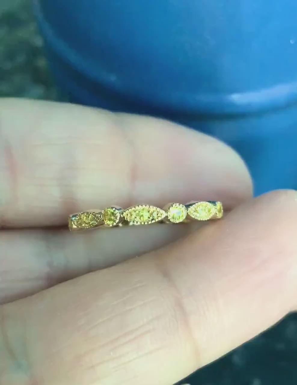 Marquise Dot Yellow Sapphire Band/ Art Deco Milgrain Bezel Yellow Sapphire Unique Stack Ring/ Sapphire Wedding, Birthstone, Anniversary Band.
