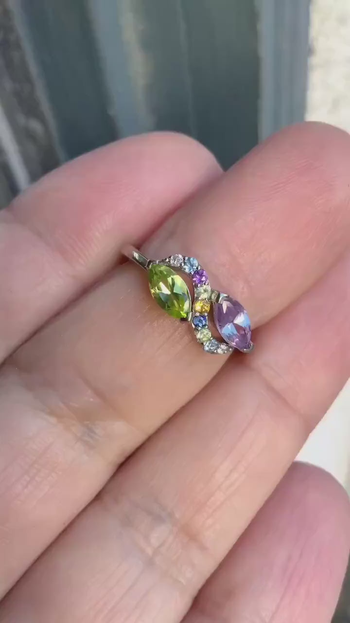 Mother's Ring/ 2 Stone Personalized Family Birthstone Ring/ Infinity Multi Stone Ring with Marquise Peridot & Alexandrite/ Big Family Ring.