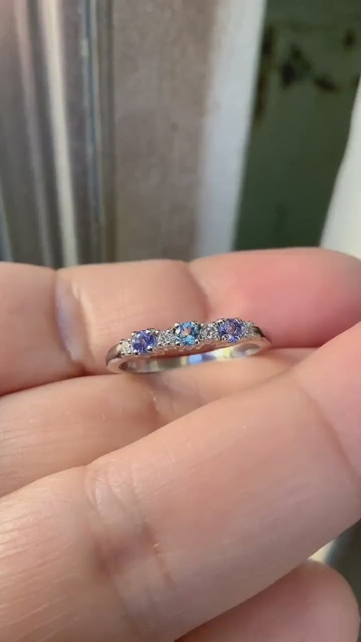 Mother's Ring/ 3 Stone Personalized Family Birthstone Ring/ Multi Stone Stack Ring: Ruby, Alexandrite, Blue Sapphire for July June September.