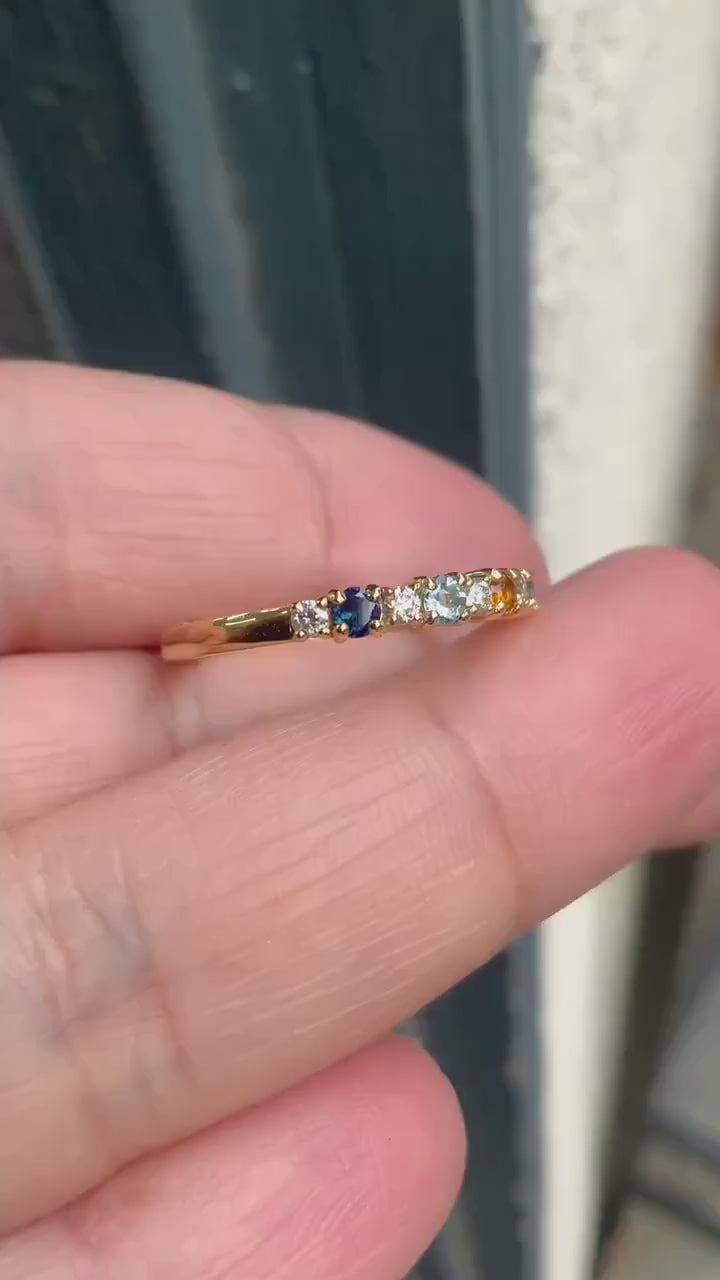 Mother's Ring/ 4 Stone Personalized Family Birthstone Ring w Diamonds/ Multi Stone Ring: London Blue Topaz Citrine Aquamarine Blue Sapphire