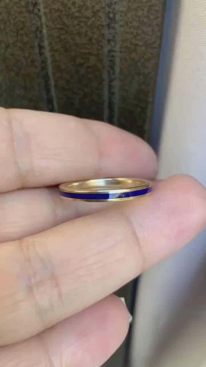 Navy Blue Enamel Band Ring/ 2.5mm Unisex Colored Enamel Stacking Ring/ His & Hers Enamel Wedding Band/ Solid Gold 10K, 14K, 18K or Platinum.