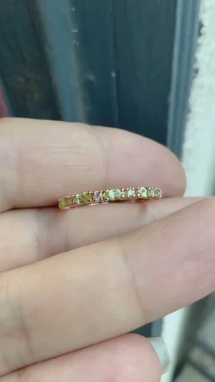 Peridot Diamond Band/ Alternating Marquise Peridot Half Eternity Stacking Ring/ August Birthstone Wedding Anniversary Ring/ Push Present.