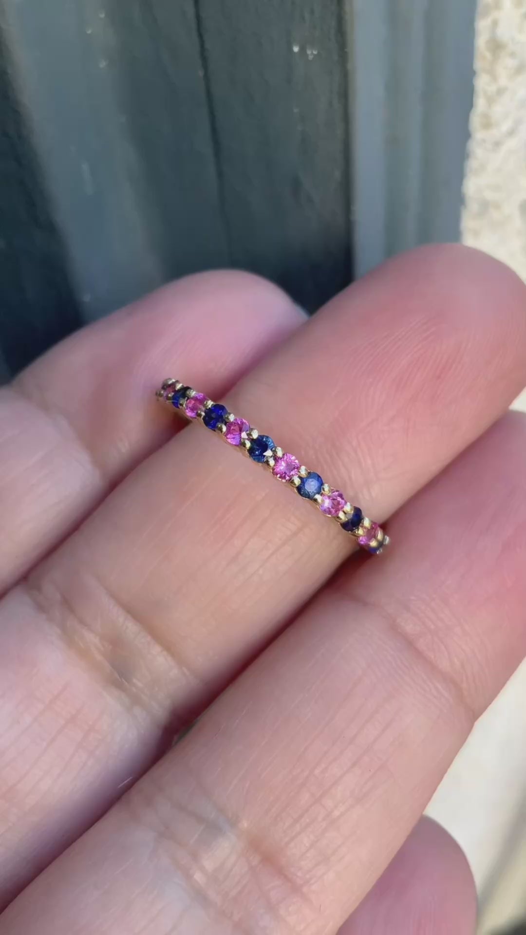 Pink Blue Sapphire Stacking Ring/ Shared Prong Sapphire 2mm Half Eternity Band/ Boy Girl Twin Ring Push Present/ 2 Birthstone Mother's Ring
