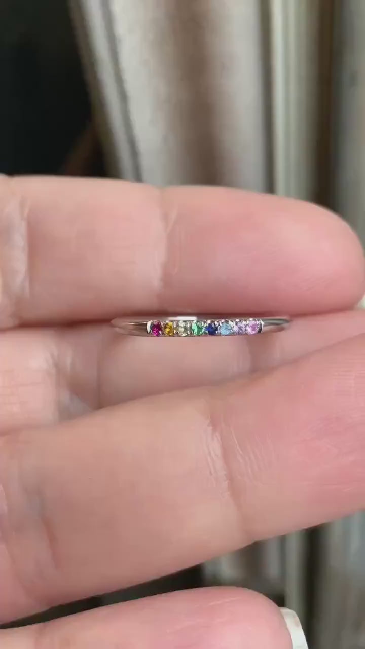 Rainbow Stacking Ring/ 1.5mm Mix Color Pave Band/ Thin Birthstone Family Ring/ Minimalist Pave Gemstone Midi Ring/ Rainbow Index, Thumb Ring