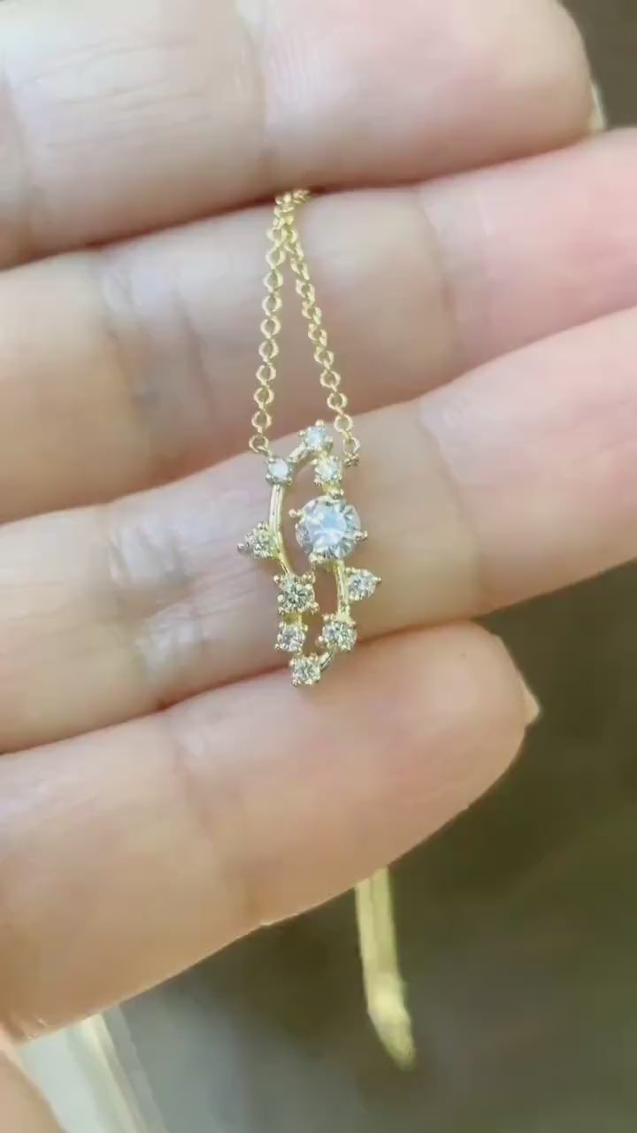 Scattered Diamond Pendant/ Mix Size Diamond Cluster Necklace/ Nature Inspired Twig Necklace/ Diamond Burst Necklace/ Mother's Day Jewelry.